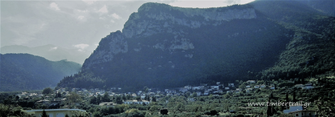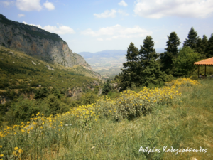 Βγαίνοντας από το φαράγγι, έχουμε θέα στις κορυφές του Παρνασσού