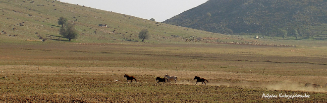 Σε λίγη ώρα το τοπίο γίνεται πεδινό και η βλάστηση αραιώνει. Μπροστά μας ένα κοπάδι άγριων αλόγων καλπάζει σ’ ένα τοπίο που θυμίζει άγρια δύση.